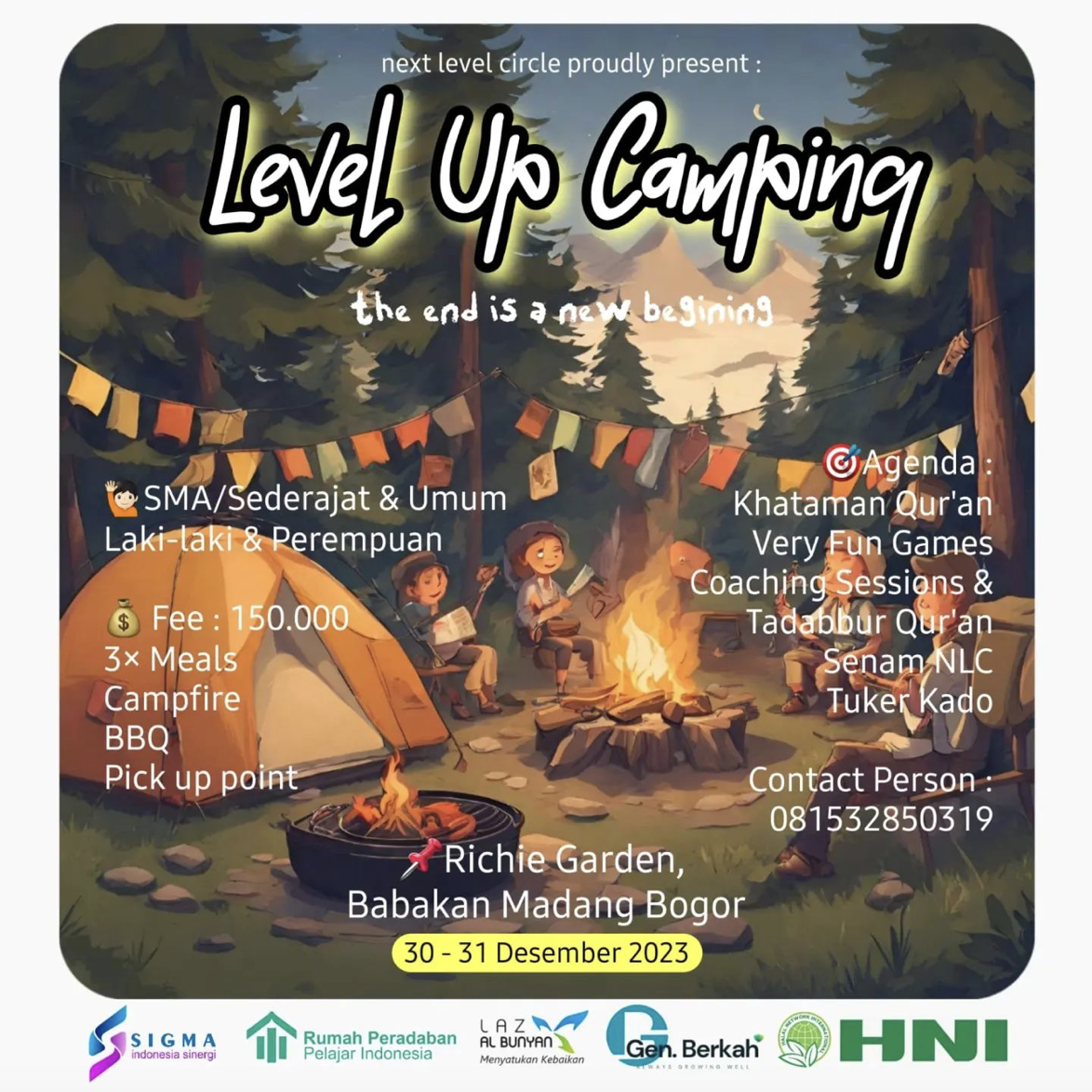 RPPI berkolaborasi dengan Sigma, HNI, dan Komunitas Next Level Circle mengadakan acara Level Up Camping pada 30-31 Desember 2023 yang