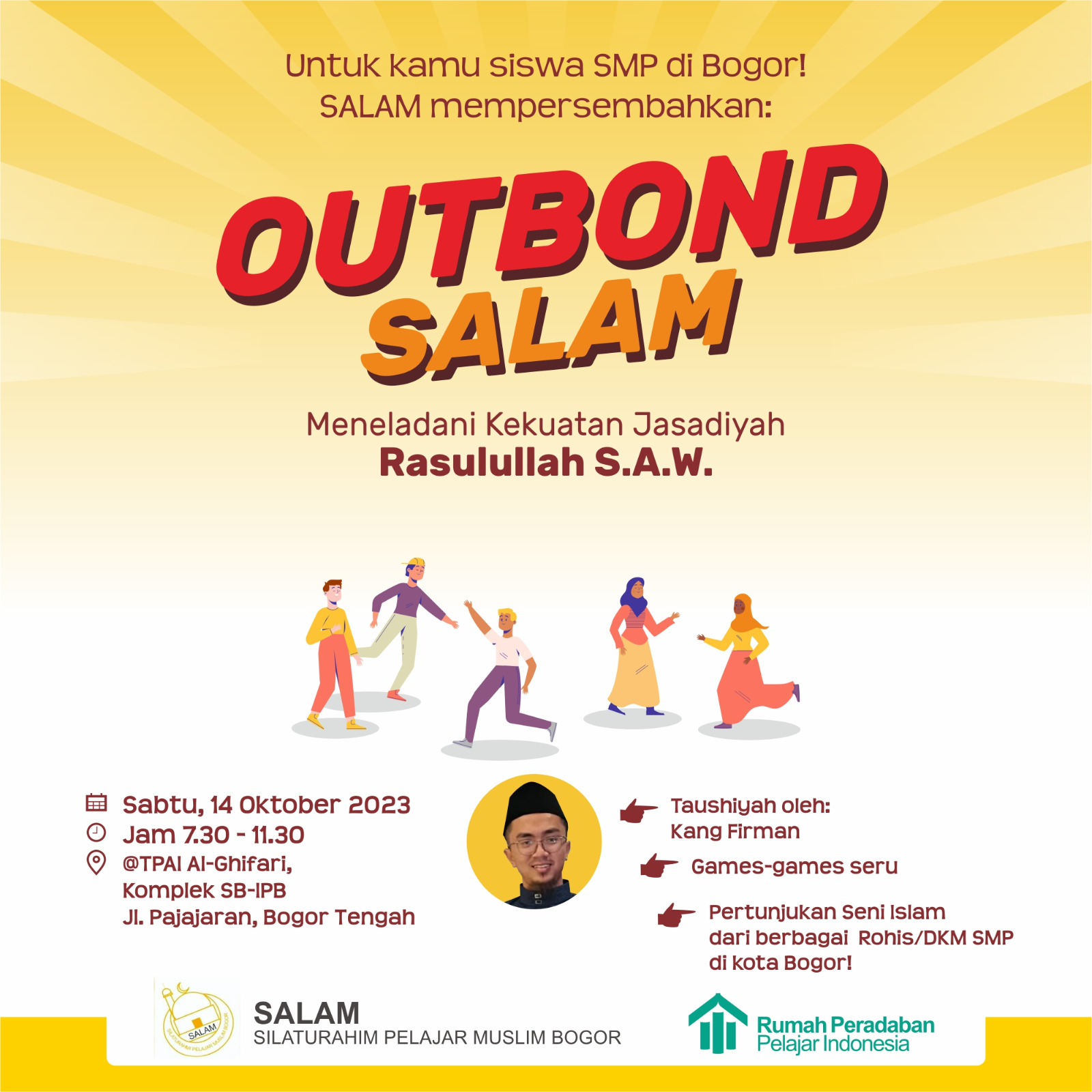 RPPI bekerjasama dengan SALAM (Silaturahim Pelajar Muslim Bogor) mengadakan outbound pada Sabtu, 14 okrober 2023 yang ditujukan untuk pelajar SMP