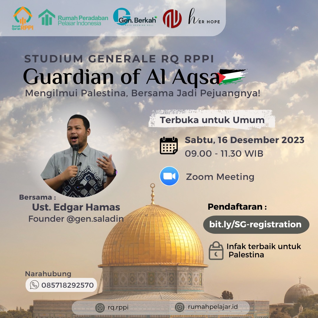 RQRPPI (bekerja sama dengan LAZ Al Bunyan dalam program Gen-Berkah) mengadakan Stadium Generale pada Sabtu, 16 Desember 2023 secara daring