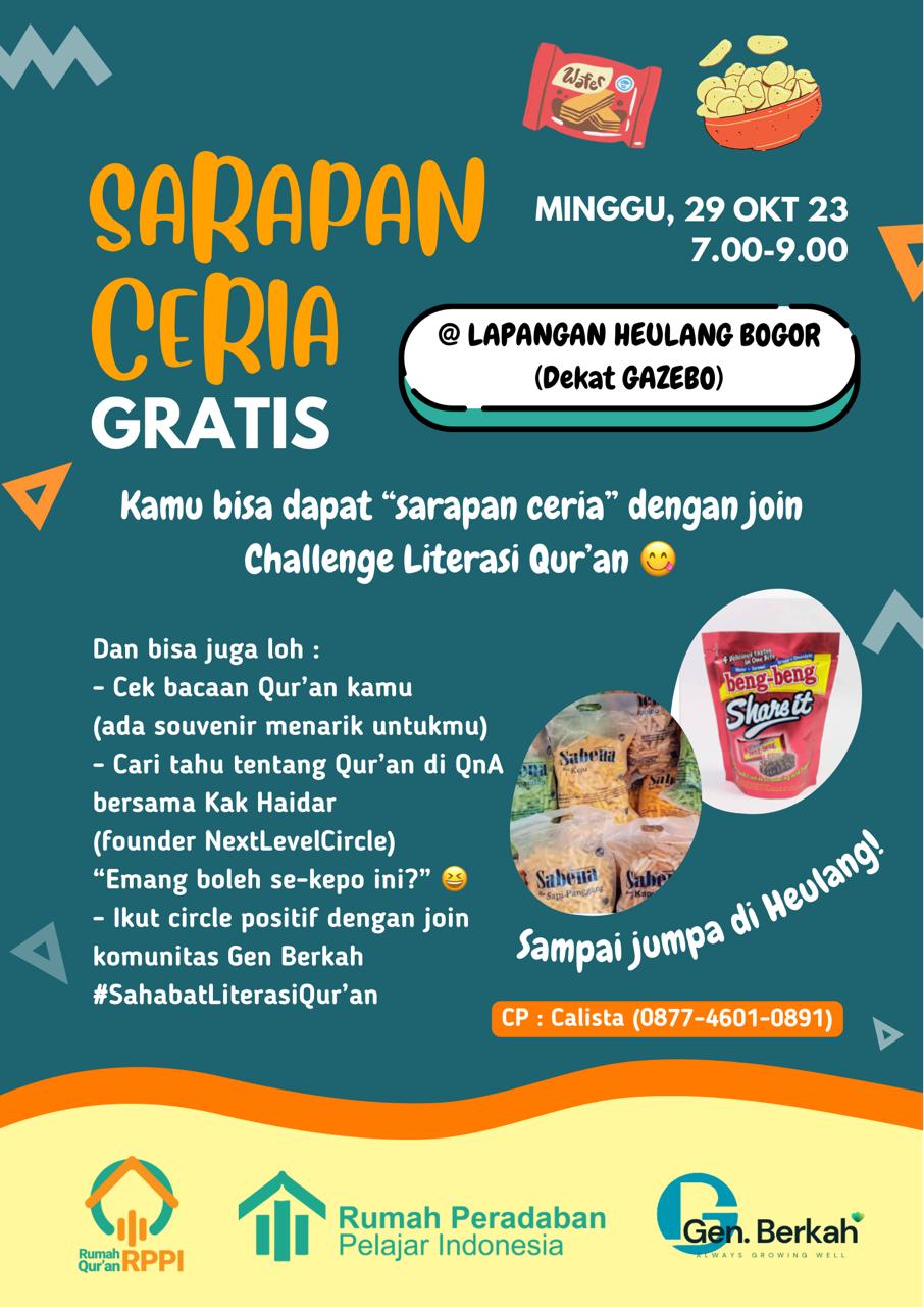 RQ RPPI bersama LAZ Al Bunyan dalam program Gen Berkah mengadakan kegiatan Literasi Qur’an sambil membagikan snack di pagi hari