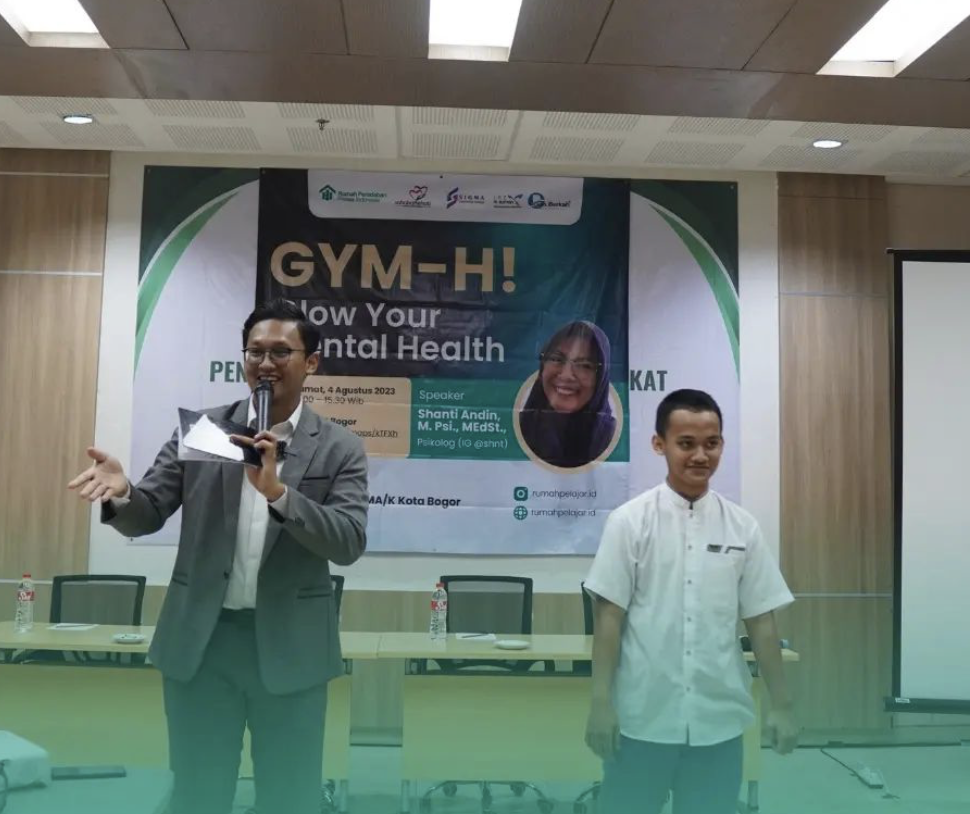 Rumah Peradaban Pelajar Indonesia berkolaborasi dengan SIGMA Indonesia Sinergi dan Sahabat Sehati Insan Indonesia mengadakan TALKSHOW seputar kesehatan mental untuk remaja berjudul GYM-H (Glow Your Mental Health) dalam program Gen Berkah. Kegiatan ini menghadirkan Kak Shanti Andin, M. Psi., MEdST. (psikolog). Kegiatan ini diselenggarakan pada Jumat, 4 Agustus 2023, pukul 13:00-15:30 WIB, di Hotel IZI Bogor. Talkshow ini diperuntukkan bagi pelajar SMA/K sederajat se-Kota Bogor. Selama talkshow Kak Shanti Andin berbagi banyak ilmu tentang sepenting apa si kesehatan mental itu, apa saja masalah-masalah kesehatan mental pada remaja, pentingnya untuk tidak self-diagnosis, hingga bagaimana cara memperkuat faktor pelindung “mental health” kita. Kegiatan ini diikuti siswa/i dari berbagai sekolah di Kota Bogor.